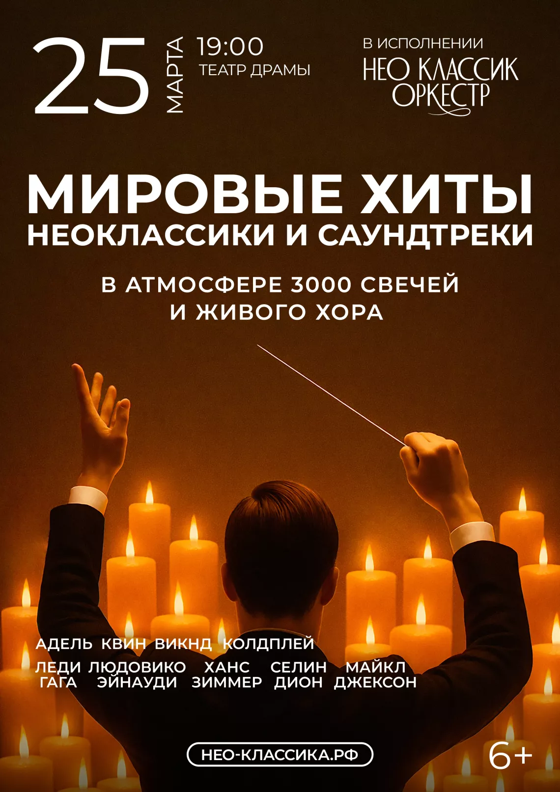 Neo Classic Orchestra представляет новую концертную программу — мировые хиты неоклассики и саундтреки. 3000 свечей, живой хор и расширенный состав оркестра.